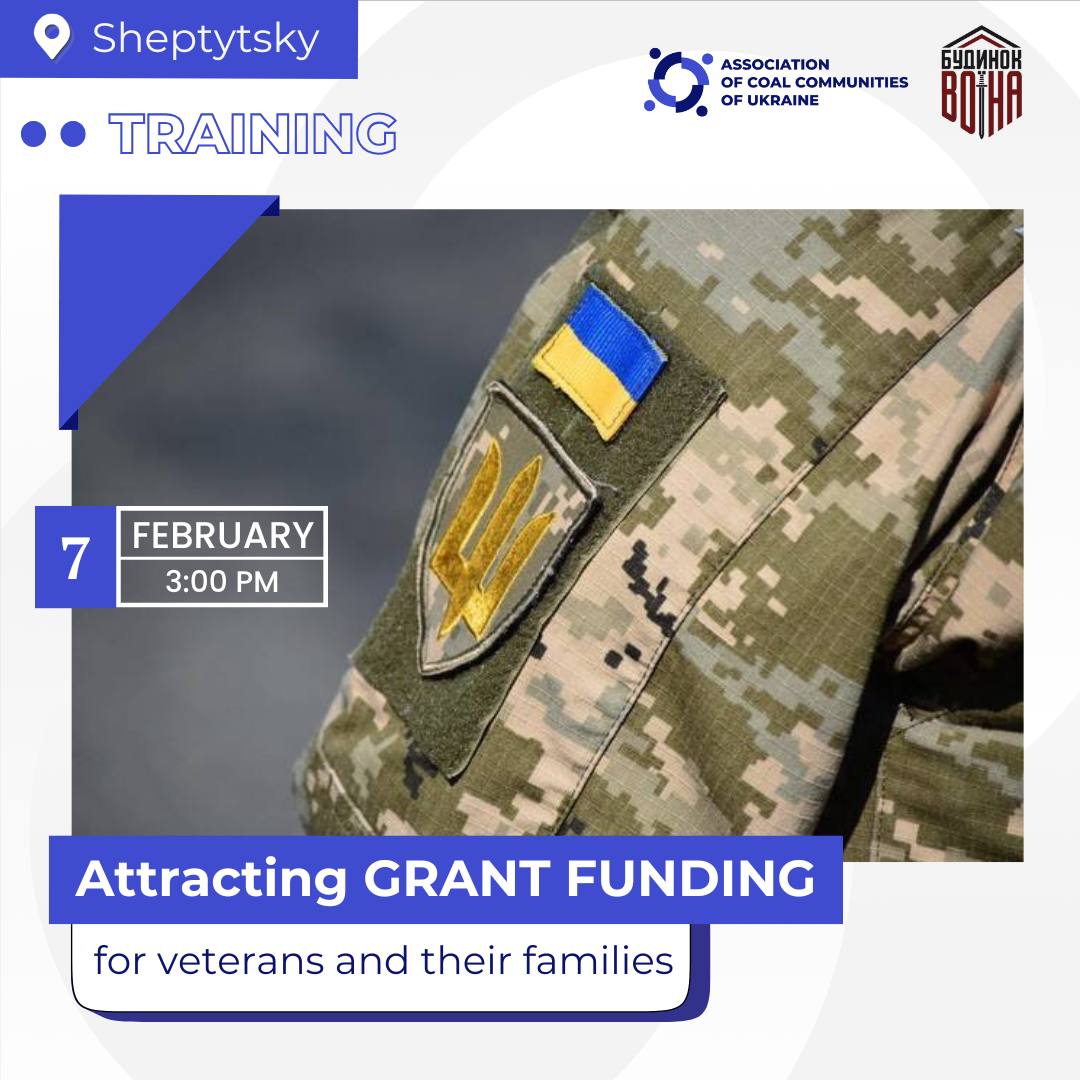 The Association of Coal Communities of Ukraine, in collaboration with the "Warrior's House" of the Sheptytsky community, invites local veterans and their family members to participate in an event focused on securing grant funding.