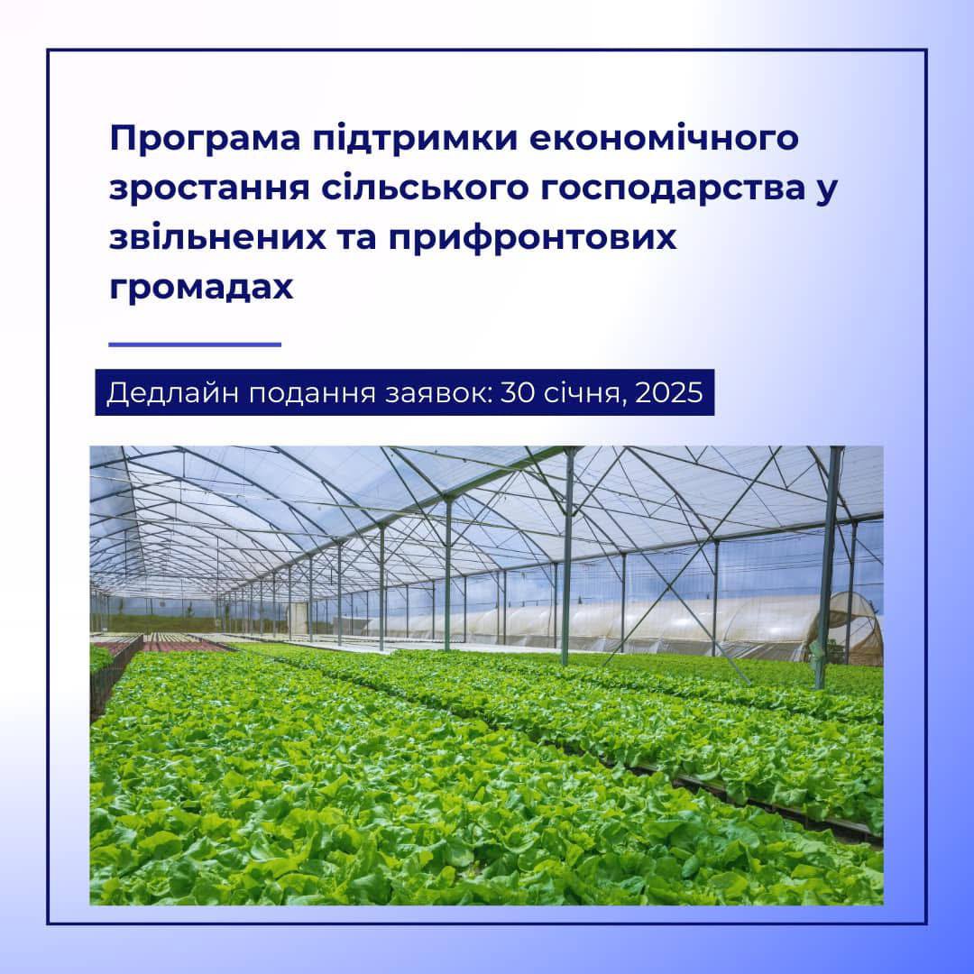 Програма забезпечує фінансування обладнання (с/г, тепличного, крапельного поливу) та консультації з брендингу, сертифікації й оптимізації бізнес-процесіс.